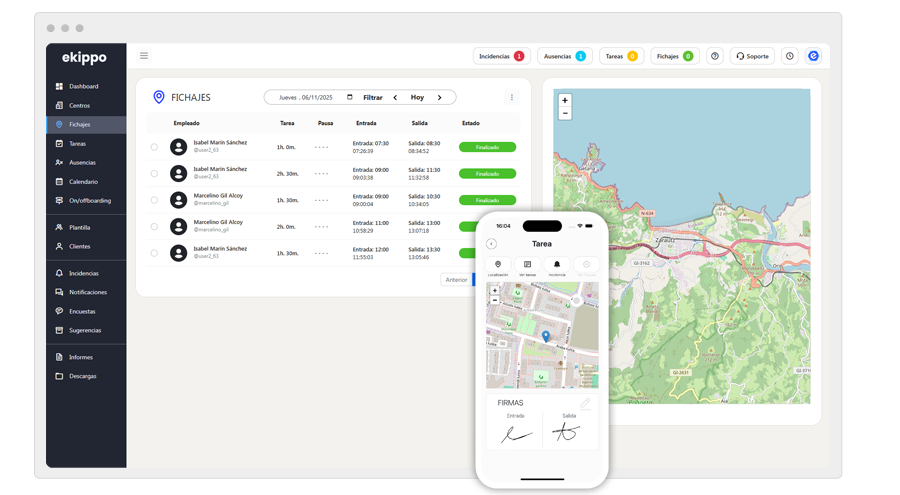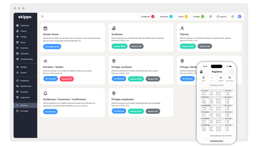 Toda la información de entradas y salidas de tu personal centralizada y accesible de forma cómoda y óptima desde tu panel de control.